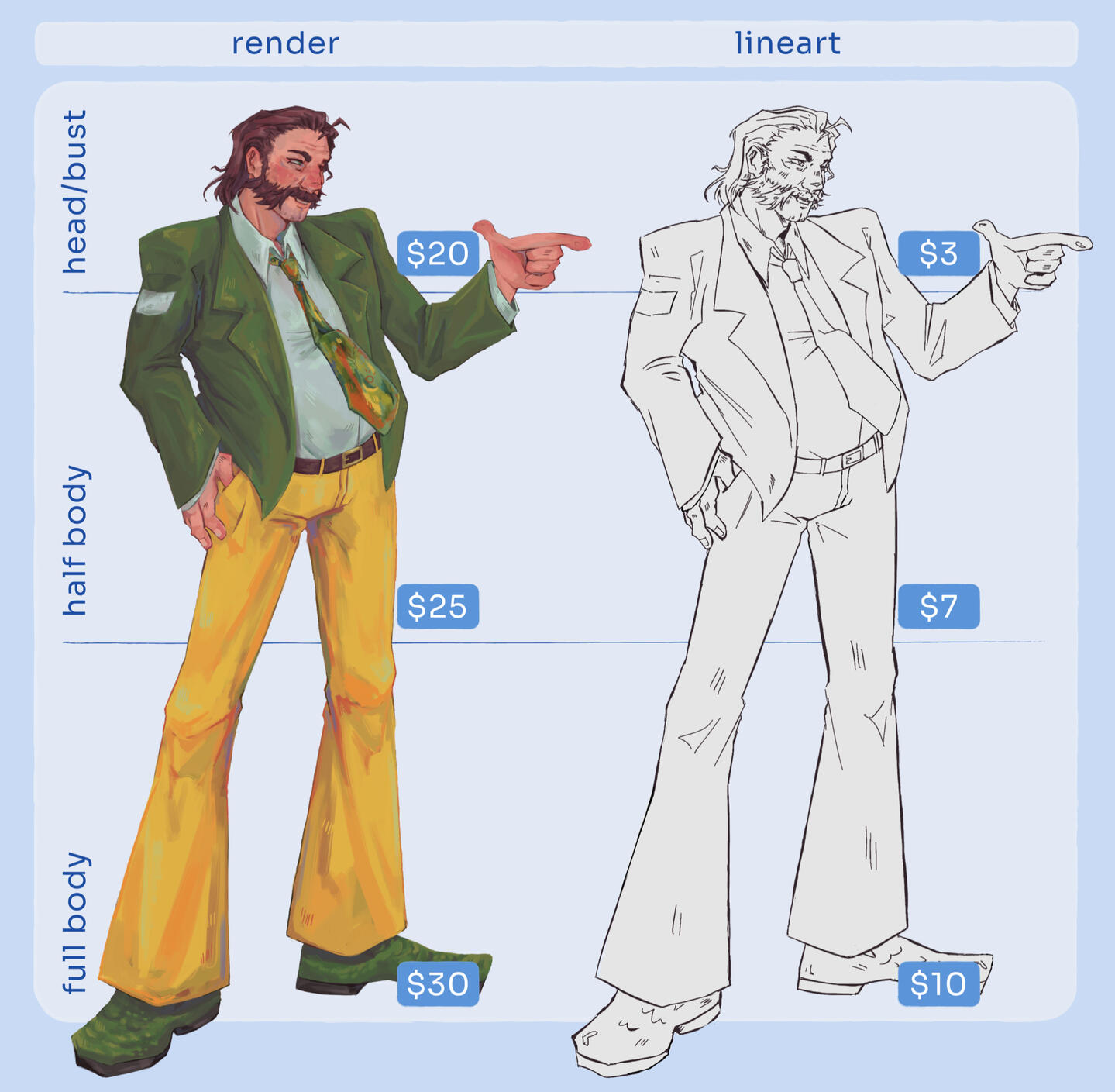 - Commissions are for personal use only (ex. profile picture). Commercial use (ex. reselling, merch) is not allowed and it will cause you to lose all rights of the artwork.